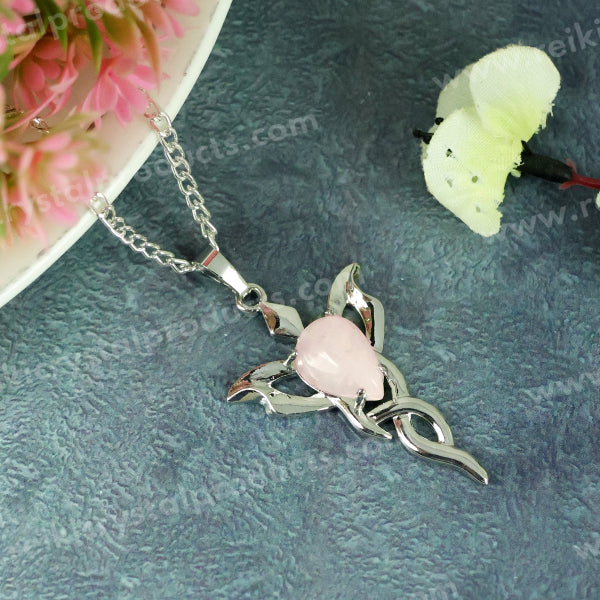 * A rose quartz pendant symbolizing love, compassion, and emotional healing. It is often worn to attract love, foster self-love, and promote harmony in relationships. The soft pink color adds a soothing and gentle energy to its wearer.