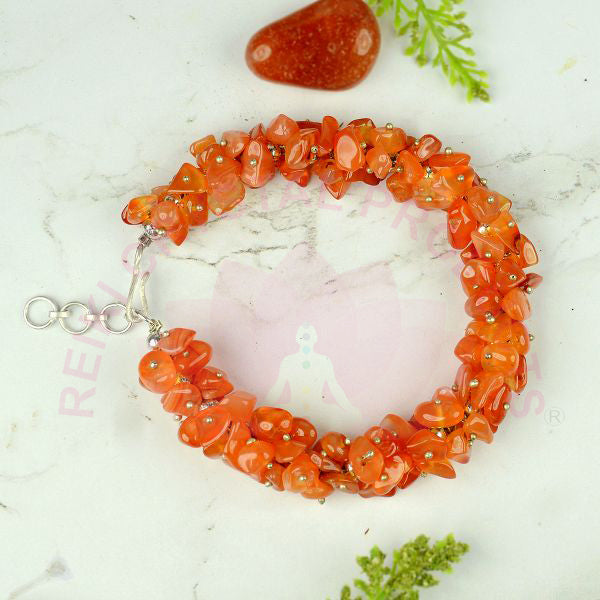 * Stretchable Elastic Handmade Carnelian Bracelet | Diameter : 6.3 cm. | Shape - Chip Beads | Charged By Reiki Grand Master & Vastu Expert