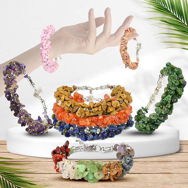 * Adjustable Handmade Natural Crystal Stone Chip Beads Bracelet