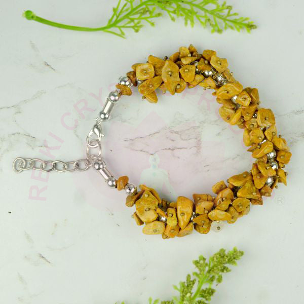 * Stretchable Elastic Handmade Yellow Jasper Bracelet | Diameter : 6.3 cm. | Shape - chip Beads