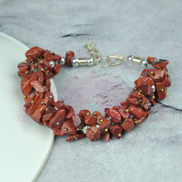* Handmade Natural Crystal Stone Red Aventurine Bracelet | Diameter : Free Size. | Shape - Natural Chip.