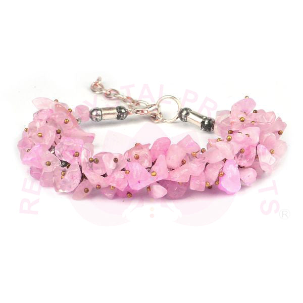* A rose quartz bracelet symbolizing love, compassion, and emotional healing. It is often worn to attract love, foster self-love, and promote harmony in relationships. The soft pink color adds a soothing and gentle energy to its wearer.