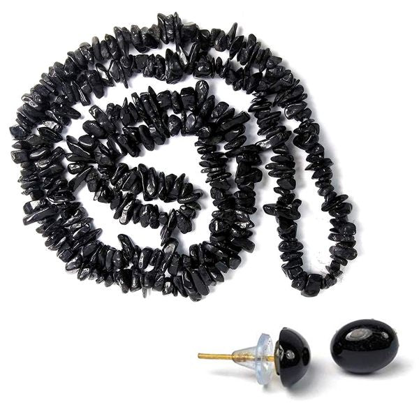 * Natural Handmade Crystal Stone Black Tourmaline Chip Mala/Earring | Length: 81.2 cm. | Shape : Natural Beads.