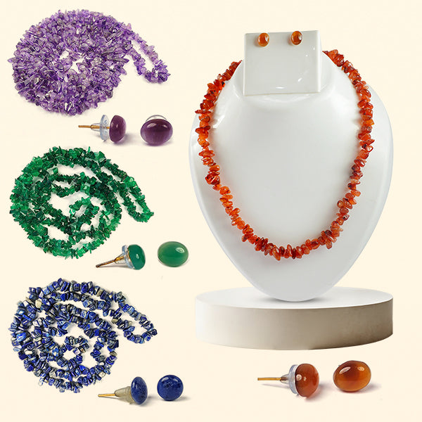 * Natural Handmade Crystal Stone Carnelian Chip Mala/Earring | Length: 81.2 cm. | Shape : Natural Beads.