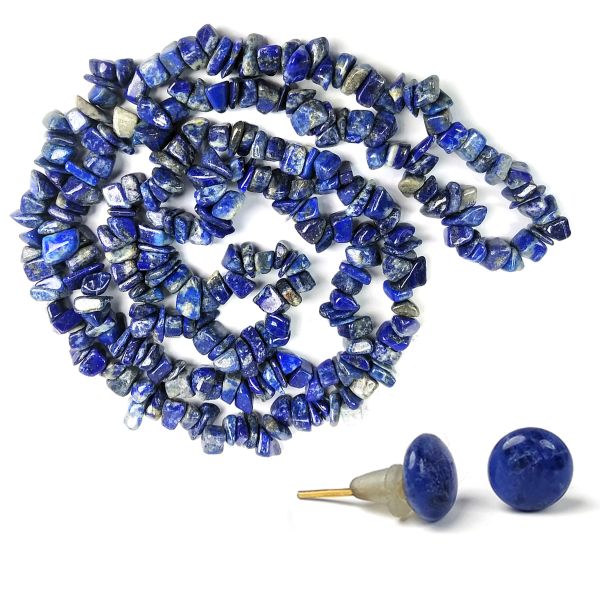 * Natural Handmade Crystal Stone Lapis Lazuli Chip Mala/Earring | Length: 81.2 cm. | Shape : Natural Beads.