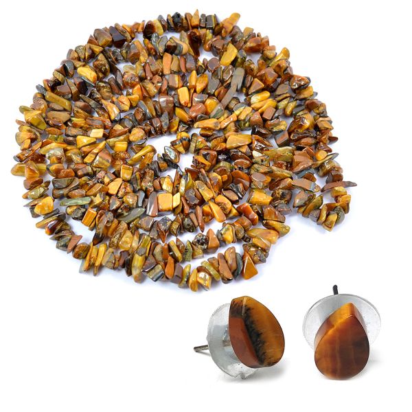 * Natural Handmade Crystal Stone Tiger's Eye Chip Mala/Earring | Length: 81.2 cm. | Shape : Natural Beads.