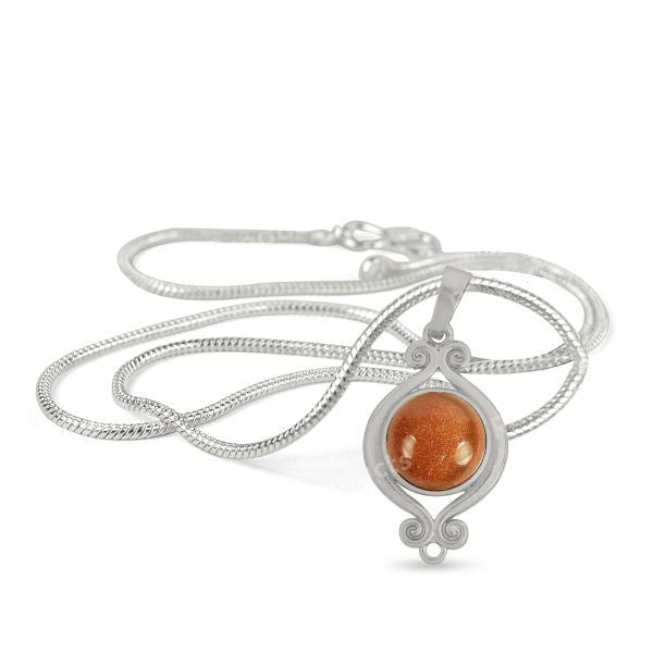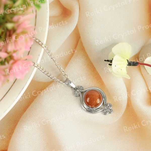 Natural Goldstone Brown Crystal Stone Pendant | Designer Round Shape | Length : 30 mm | Width - 15-20 mm . Pendant Charged By Reiki Grand Master & Vastu Expert