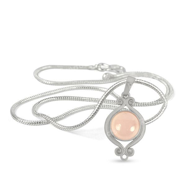 * A rose quartz pendant symbolizing love, compassion, and emotional healing. It is often worn to attract love, foster self-love, and promote harmony in relationships. The soft pink color adds a soothing and gentle energy to its wearer.
