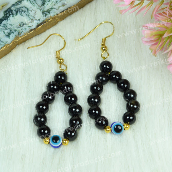 Natural Crystal / Stone Black onyx With Evil Eye Earring | Length : 5.5 cm | Width - 2.5 cm . Charged By Reiki Grand Master & Vastu Expert