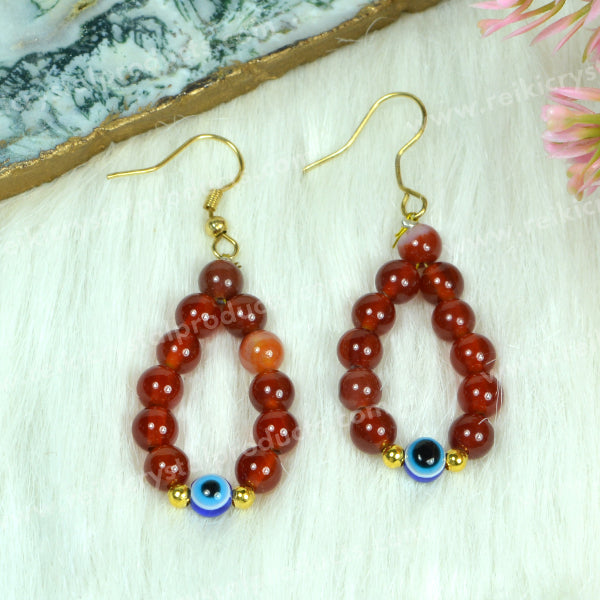 Natural Crystal / Stone Carnelian With Evil Eye Earring | Length : 5.5 cm | Width - 2.5 cm . Charged By Reiki Grand Master & Vastu Expert
