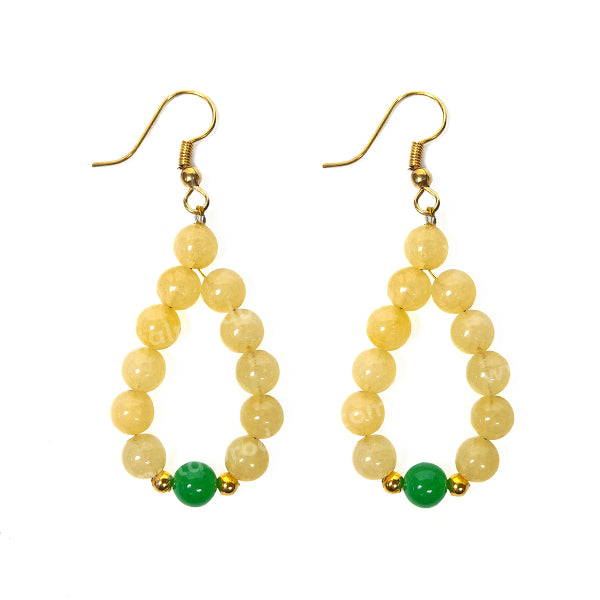 Natural Crystal / Stone Golden Quartz With Green Jade Earring| Length : 5.5 cm | Width - 2.5 cm . Charged By Reiki Grand Master & Vastu Expert