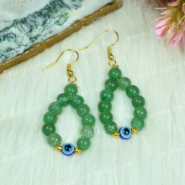 Natural Crystal / Stone Green Jade With Evil Eye Earring| Length : 5.5 cm | Width - 2.5 cm . Charged By Reiki Grand Master & Vastu Expert