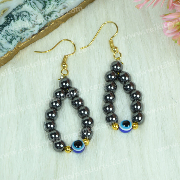 Natural Crystal / Stone Hematite With Evil Eye Earring| Length : 5.5 cm | Width - 2.5 cm . Charged By Reiki Grand Master & Vastu Expert