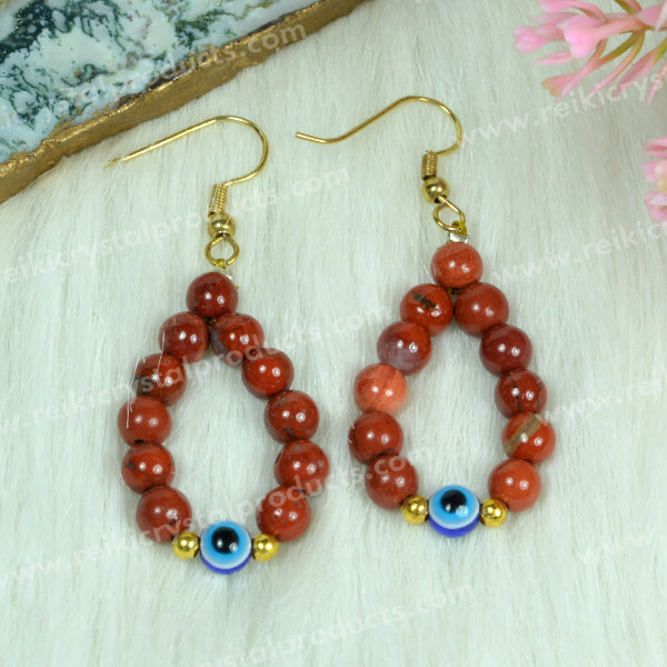 Natural Crystal / Stone Red Jasper With Evil Eye Earring| Length : 5.5 cm | Width - 2.5 cm . Charged By Reiki Grand Master & Vastu Expert