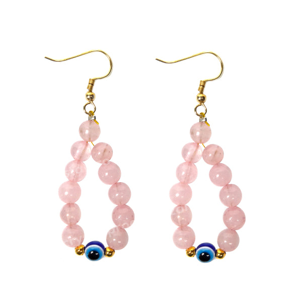 Natural Crystal / Stone Rose Quartz With Evil Eye Earring| Length : 5.5 cm | Width - 2.5 cm . Charged By Reiki Grand Master & Vastu Expert