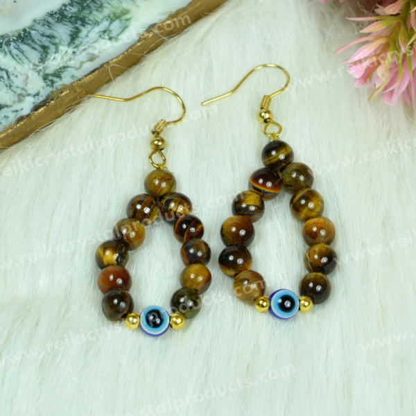 Natural Crystal / Stone Tiger Eye With Evil Eye Earring| Length : 5.5 cm | Width - 2.5 cm . Charged By Reiki Grand Master & Vastu Expert