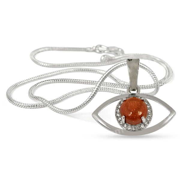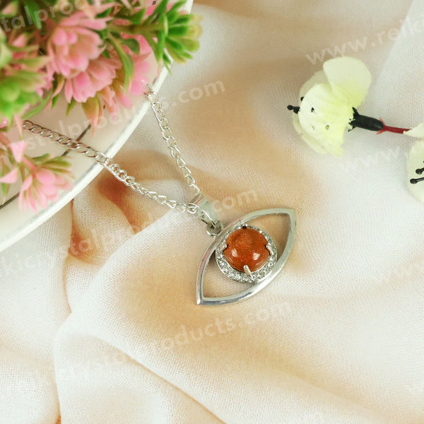 Natural Goldstone Brown Crystal Stone Pendant Eye Shape Design | Length : 20-25 mm | Width - 30-35 mm . Pendant Charged By Reiki Grand Master & Vastu Expert