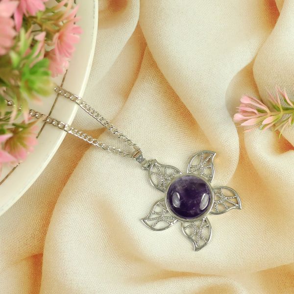 * Amethyst pendants is a striking purple variety of quartz, known for its spiritual and calming properties. Often associated with tranquility and clarity, it is believed to relieve stress, aid in meditation, and promote restful sleep. This semi-precious stone is also thought to enhance intuition, emotional healing, and protect against negative energy. Widely used in jewelry and crystal healing, amethyst has been cherished across cultures for centuries.