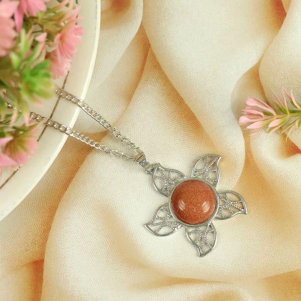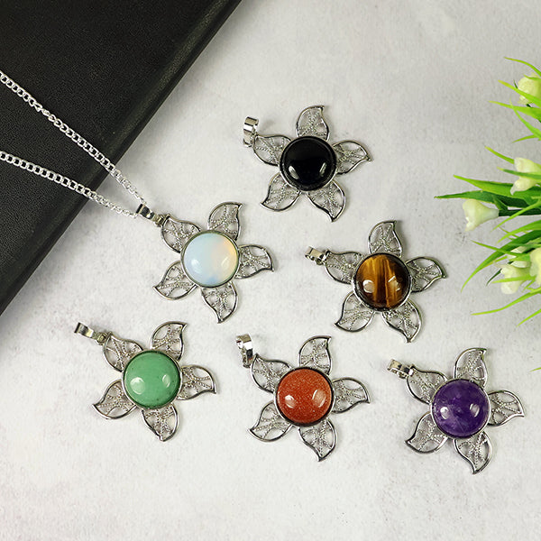 * Natural Crystal Stone Pendant | Length: 40 mm. | Width: 40 mm. Flower Shape.