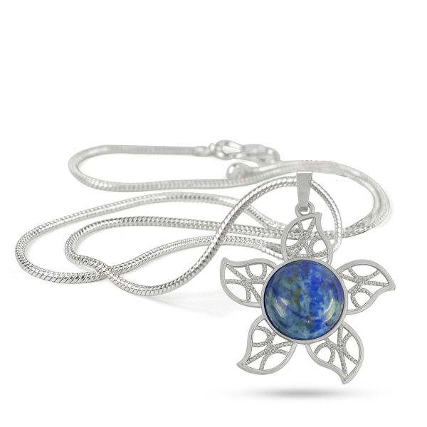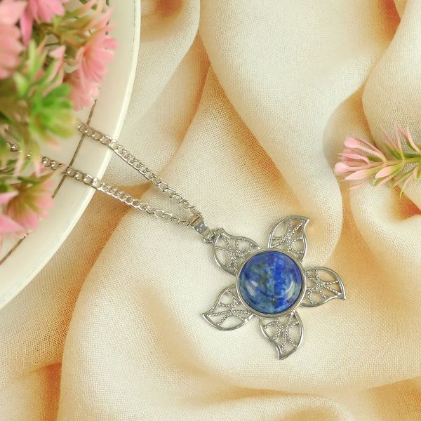* A lapis lazuli pendant characterized by their deep blue color and golden flecks of pyrite. This stone is often associated with wisdom, truth, and self-expression, making it a powerful tool for enhancing communication and insight. Lapis lazuli is also believed to promote inner peace, stimulate intellectual ability, and encourage self-awareness, making it a popular choice for those seeking personal and spiritual growth.