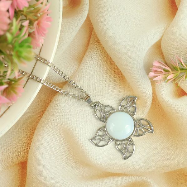 Natural Crystal Stone Flower Shape Pendant | Length : 40 mm | Width - 40 mm . Pendant Charged By Reiki Grand Master & Vastu Expert