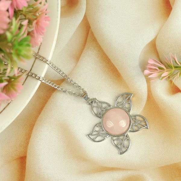 * A rose quartz pendant symbolizing love, compassion, and emotional healing. It is often worn to attract love, foster self-love, and promote harmony in relationships. The soft pink color adds a soothing and gentle energy to its wearer.