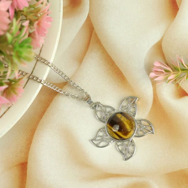 * A tiger's eye pendant is known for their striking golden to brown bands. This stone is often associated with protection, grounding, and clarity, promoting mental focus and confidence. Wearing a tiger's eye pendant is believed to enhance courage, balance emotions, and attract good fortune while providing a shield against negative energies. Its unique, shimmering appearance adds a bold touch to any jewelry collection.