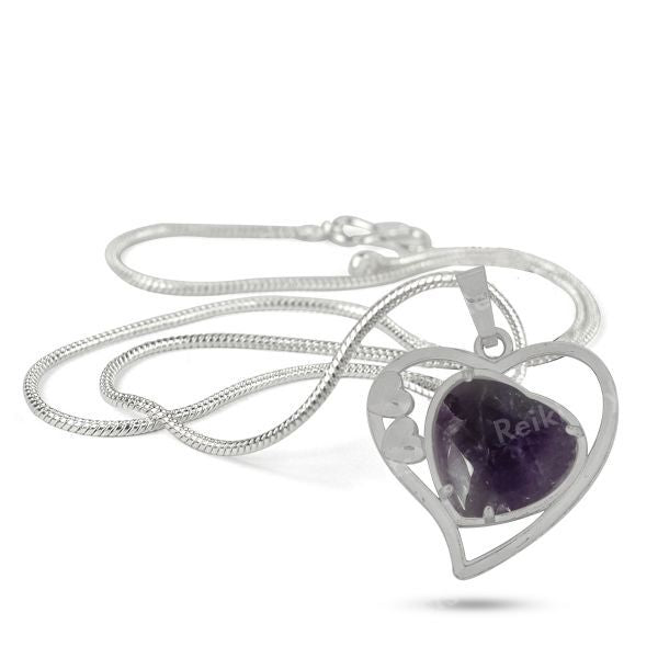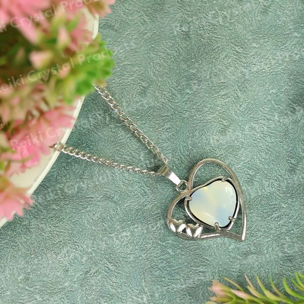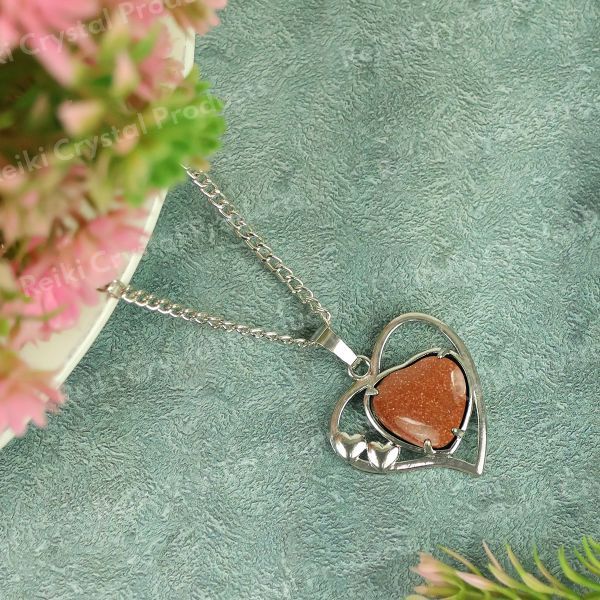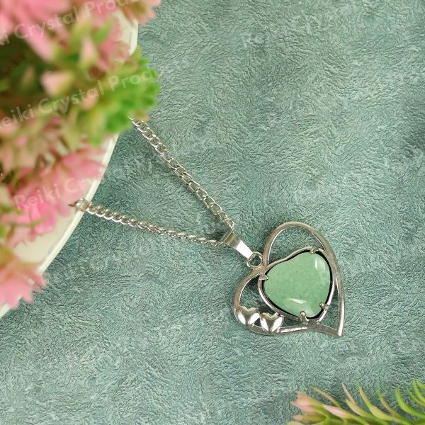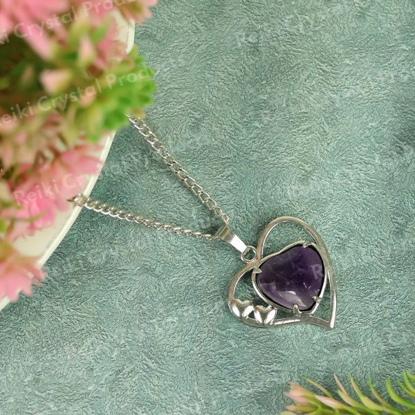 Natural Crystal Stone Metal Heart Shape Pendant | Length : 40 mm | Width - 40 mm . Pendant Charged By Reiki Grand Master & Vastu Expert