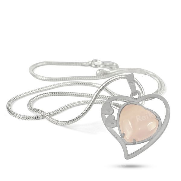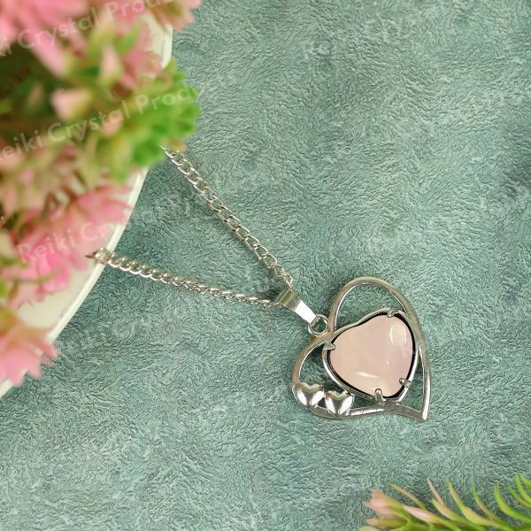 * A rose quartz pendant symbolizing love, compassion, and emotional healing. It is often worn to attract love, foster self-love, and promote harmony in relationships. The soft pink color adds a soothing and gentle energy to its wearer.