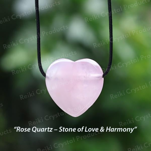* Handmade Natural Crystal Stone Pendant* A rose quartz pendant symbolizing love, compassion, and emotional healing. It is often worn to attract love, foster self-love, and promote harmony in relationships. The soft pink color adds a soothing and gentle energy to its wearer.* Energized by Experienced Reiki Grandmaster.* The pendant is made from Natural Stones so small holes, crack marks on the surface or inside the stones are often visible.