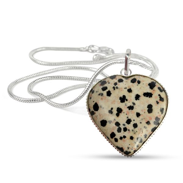 Handmade Natural Crystal Stone Dalmataion Pendant with Chain | Length : 30-35 mm | Width - 30-35 mm . Charged By Reiki Grand Master & Vastu Expert