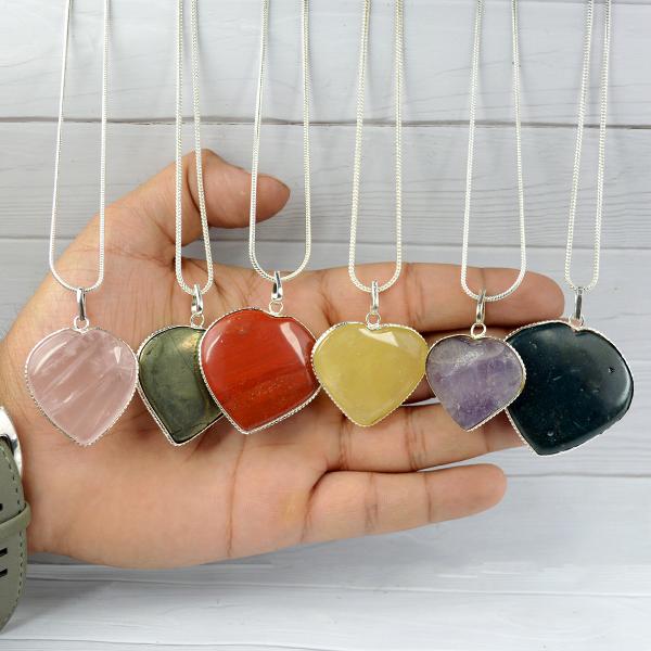 * Handmade Natural Crystal Stone Pendant | Length: 30-35 mm. | Width: 30-35 mm. Heart Shape.