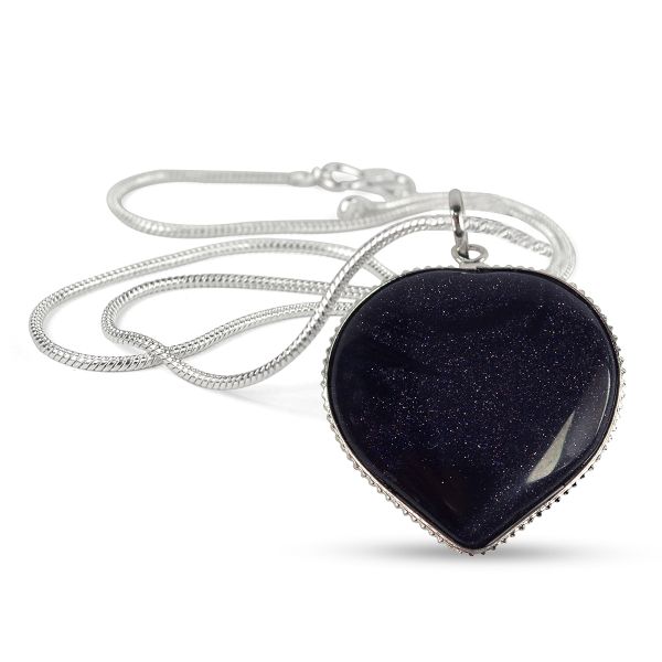 Handmade Natural Crystal Stone Goldstone Blue Pendant with Chain | Length : 30-35 mm | Width - 30-35 mm . Charged By Reiki Grand Master & Vastu Expert