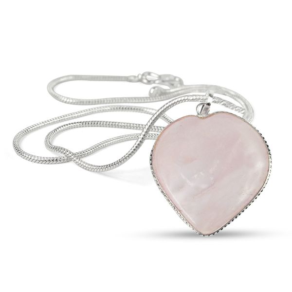 * A rose quartz pendant symbolizing love, compassion, and emotional healing. It is often worn to attract love, foster self-love, and promote harmony in relationships. The soft pink color adds a soothing and gentle energy to its wearer.