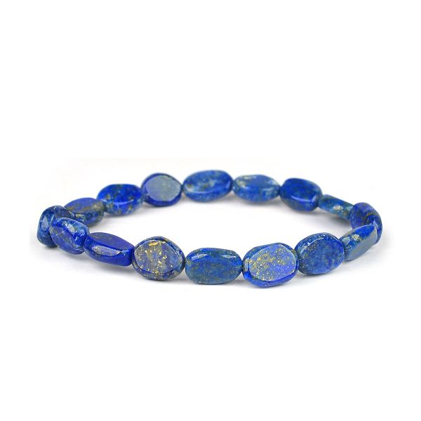 * A lapis lazuli bracelet characterized by their deep blue color and golden flecks of pyrite. This stone is often associated with wisdom, truth, and self-expression, making it a powerful tool for enhancing communication and insight. Lapis lazuli is also believed to promote inner peace, stimulate intellectual ability, and encourage self-awareness, making it a popular choice for those seeking personal and spiritual growth.