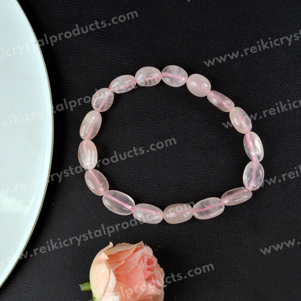 *A rose quartz bracelet symbolizing love, compassion, and emotional healing. It is often worn to attract love, foster self-love, and promote harmony in relationships. The soft pink color adds a soothing and gentle energy to its wearer.