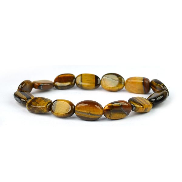 * A tiger's eye bracelet is known for their striking golden to brown bands. This stone is often associated with protection, grounding, and clarity, promoting mental focus and confidence. Wearing a tiger's eye bracelet is believed to enhance courage, balance emotions, and attract good fortune while providing a shield against negative energies. Its unique, shimmering appearance adds a bold touch to any jewelry collection.