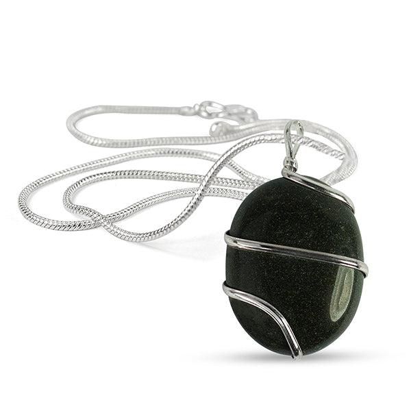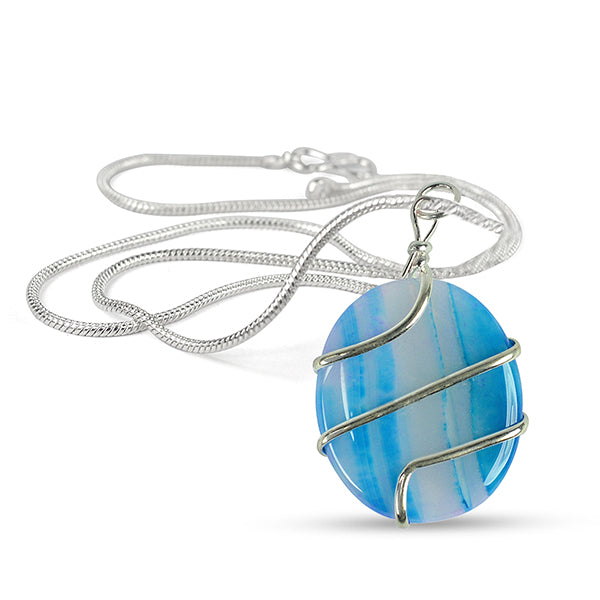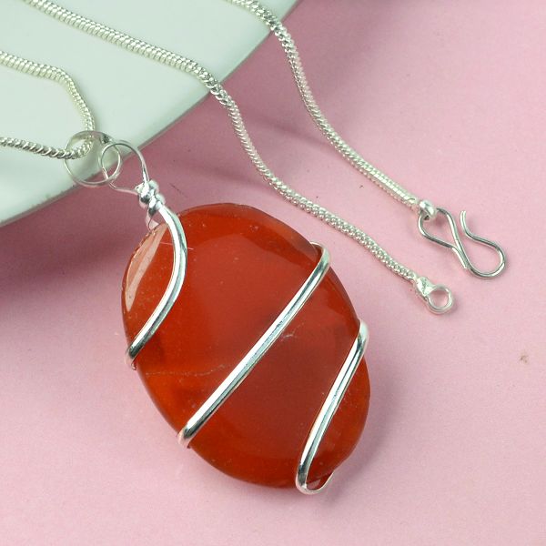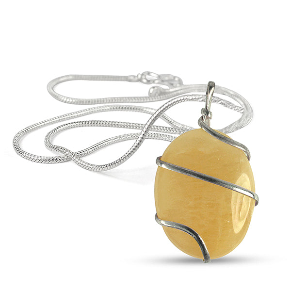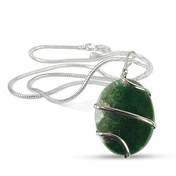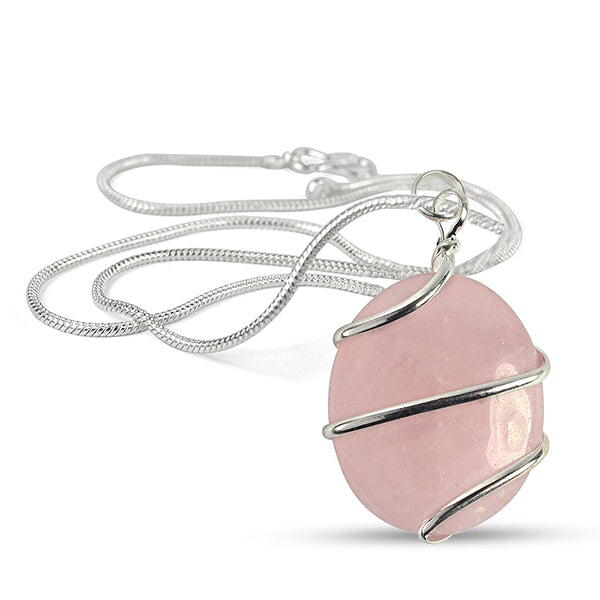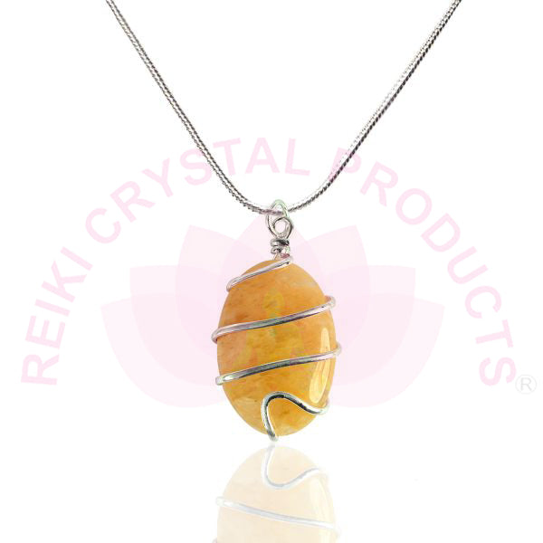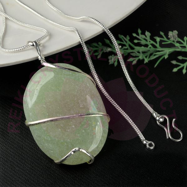 Natural Crystal Stone Oval Shape Wire Wrapped Pendant Size 30-35 mm with Metal Chain