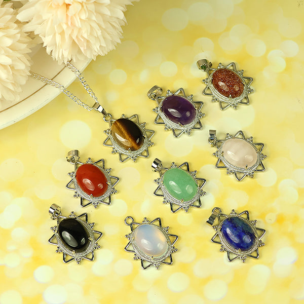 * Natural Crystal Stone Pendant | Oval Shape.* Energized by Experienced Reiki Grandmaster.* The pendant is made from Natural Stones so small holes, crack marks on the surface or inside the stones are often visible.* Note: The Crystal Stone Pendant is a spiritual accessory, and its perceived impact is often rooted in personal belief and intention.