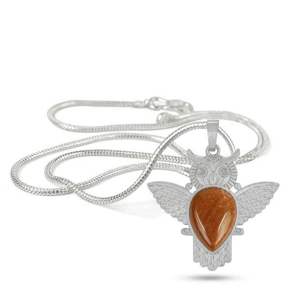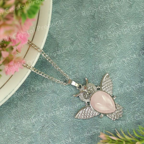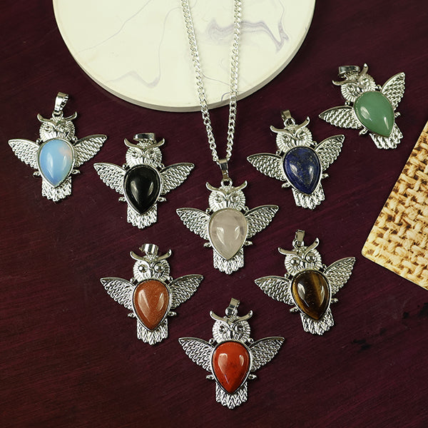 * Handmade Natural Crystal Stone Pendant | Length: 35 mm. | Width: 25 mm. Owl Shape.