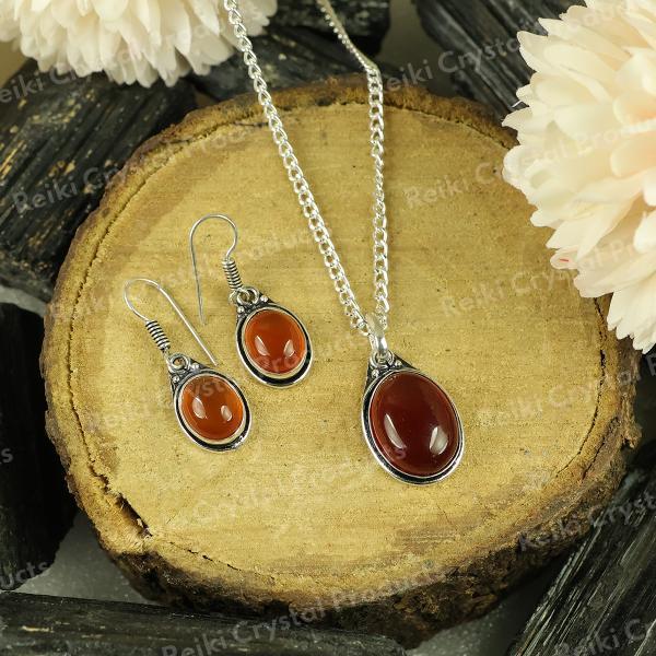 Balancing Energy: Carnelian is thought to balance and cleanse the energy centers, creating a harmonious flow of vital life force. Feel the balancing effects as you incorporate this Pendant with earring into your daily accessories.