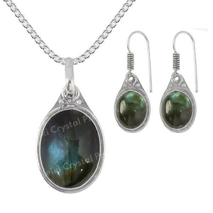 Spiritual Insight: Connected with the third eye and crown chakras, Labradorite is believed to enhance intuition and spiritual insight. Let this pendant with earring be a companion on your spiritual journey, promoting inner wisdom and higher consciousness.