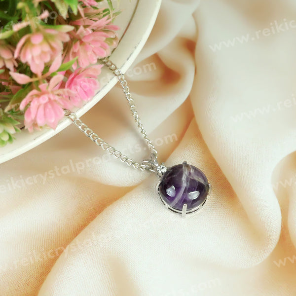 * Amethyst pendants is a striking purple variety of quartz, known for its spiritual and calming properties. Often associated with tranquility and clarity, it is believed to relieve stress, aid in meditation, and promote restful sleep. This semi-precious stone is also thought to enhance intuition, emotional healing, and protect against negative energy. Widely used in jewelry and crystal healing, amethyst has been cherished across cultures for centuries.