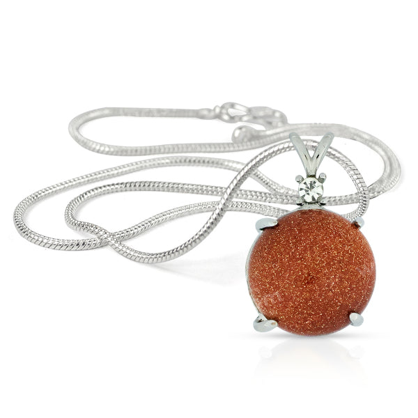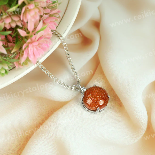 Natural Goldstone Brown Crystal Stone Pendant | Designer Round Shape | Length : 30 mm | Width - 15-20 mm . Pendant Charged By Reiki Grand Master & Vastu Expert