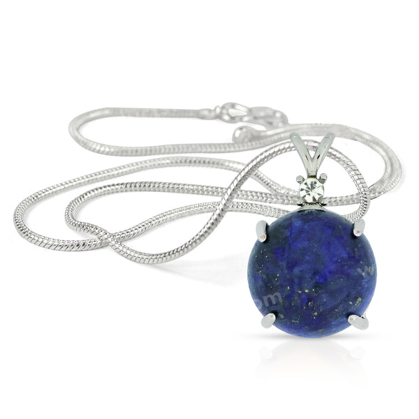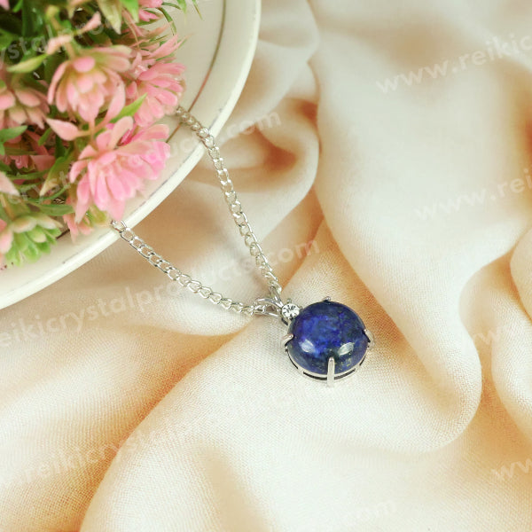 * A lapis lazuli pendant characterized by their deep blue color and golden flecks of pyrite. This stone is often associated with wisdom, truth, and self-expression, making it a powerful tool for enhancing communication and insight. Lapis lazuli is also believed to promote inner peace, stimulate intellectual ability, and encourage self-awareness, making it a popular choice for those seeking personal and spiritual growth.