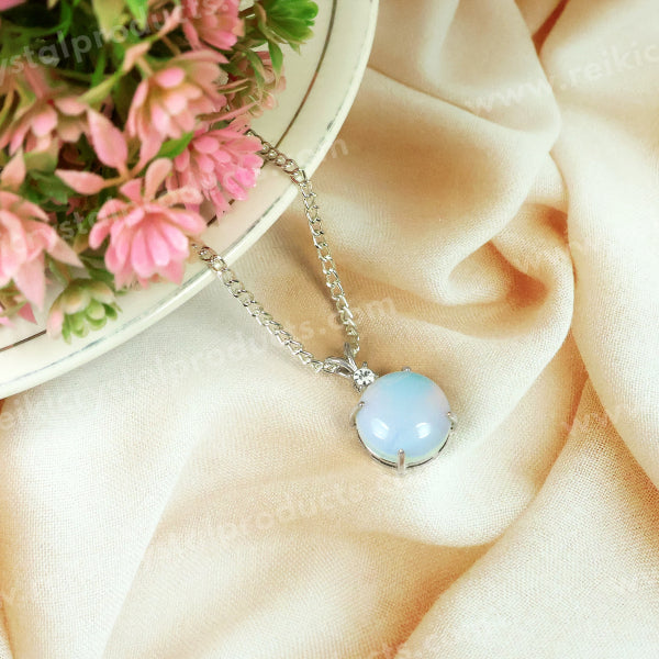 Natural Opalite Crystal Stone Pendant | Designer Round Shape | Length : 25 mm | Width - 15 mm . Pendant Charged By Reiki Grand Master & Vastu Expert