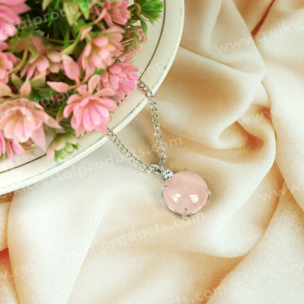 * A rose quartz pendant symbolizing love, compassion, and emotional healing. It is often worn to attract love, foster self-love, and promote harmony in relationships. The soft pink color adds a soothing and gentle energy to its wearer.