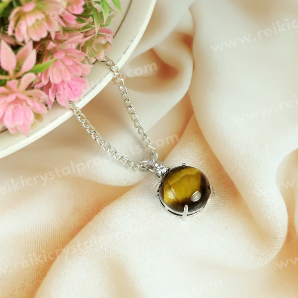 * A tiger's eye pendant is known for their striking golden to brown bands. This stone is often associated with protection, grounding, and clarity, promoting mental focus and confidence. Wearing a tiger's eye pendant is believed to enhance courage, balance emotions, and attract good fortune while providing a shield against negative energies. Its unique, shimmering appearance adds a bold touch to any jewelry collection.