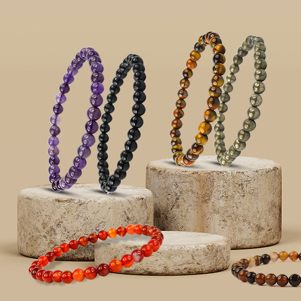 * A tiger's eye bracelet is known for their striking golden to brown bands. This stone is often associated with protection, grounding, and clarity, promoting mental focus and confidence. Wearing a tiger's eye bracelet is believed to enhance courage, balance emotions, and attract good fortune while providing a shield against negative energies. Its unique, shimmering appearance adds a bold touch to any jewelry collection.