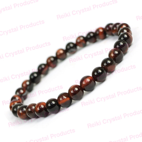 * A red tiger's eye bracelet is known for their striking golden to brown bands. This stone is often associated with protection, grounding, and clarity, promoting mental focus and confidence. Wearing a tiger's eye bracelet is believed to enhance courage, balance emotions, and attract good fortune while providing a shield against negative energies. Its unique, shimmering appearance adds a bold touch to any jewelry collection.